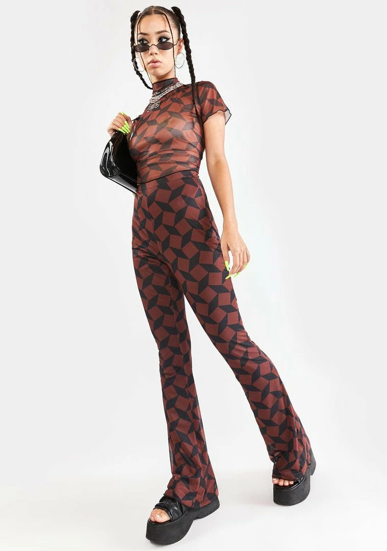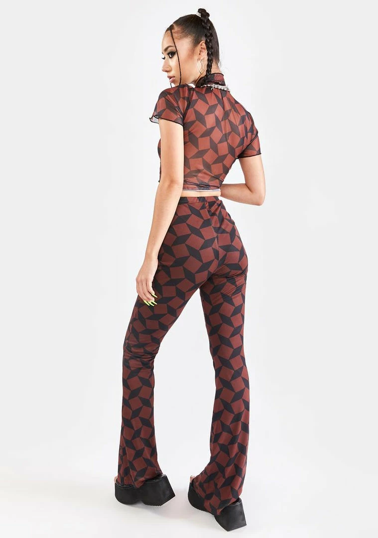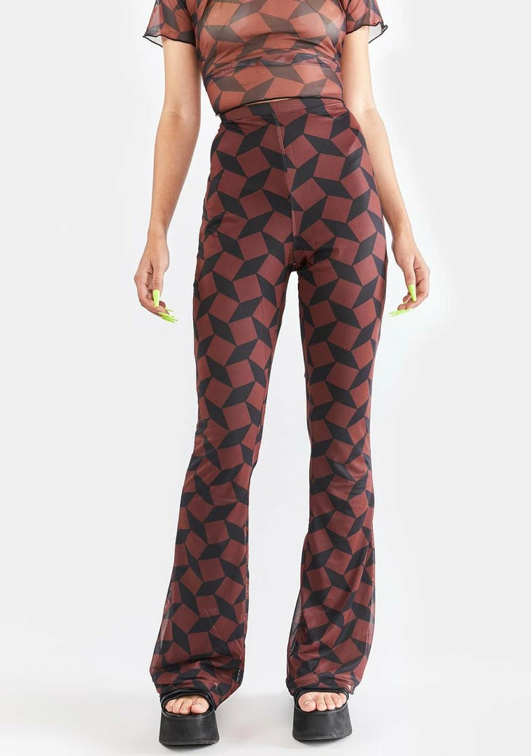 Promo π Another Girl Recycled Brown Geo Mesh Flare Pants Bottoms β¨