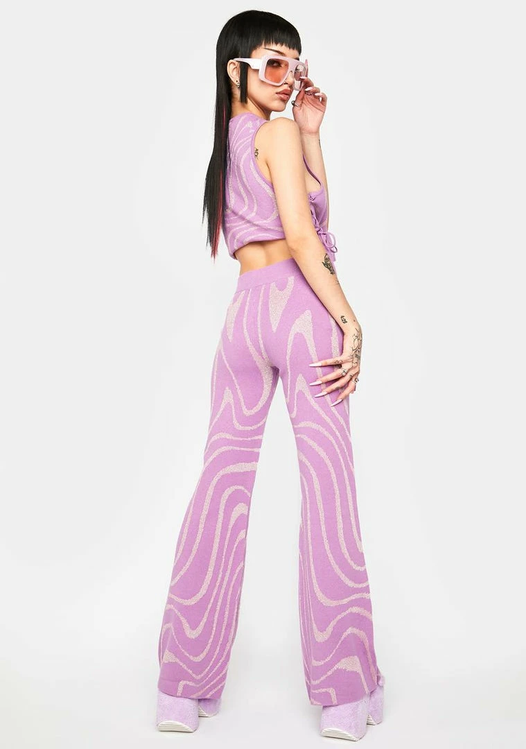 cuz yer freein’ the universe with yer style! Explore the galaxy in these high-waisted knit pants made from 100% organic cotton with an on-trend flare leg.