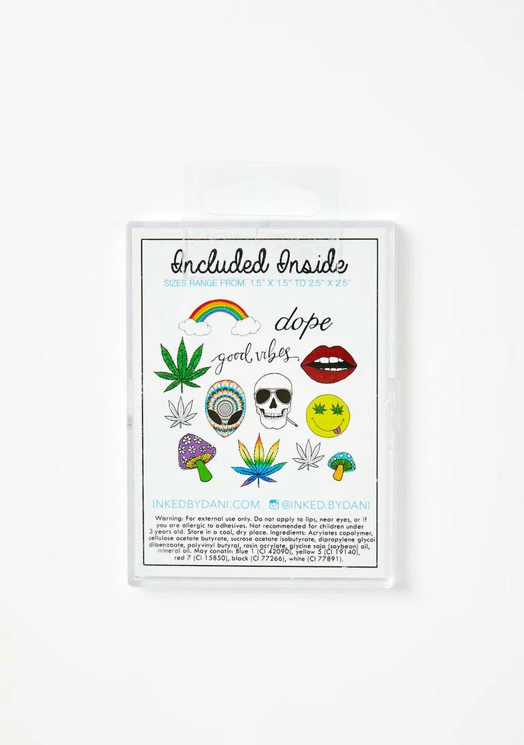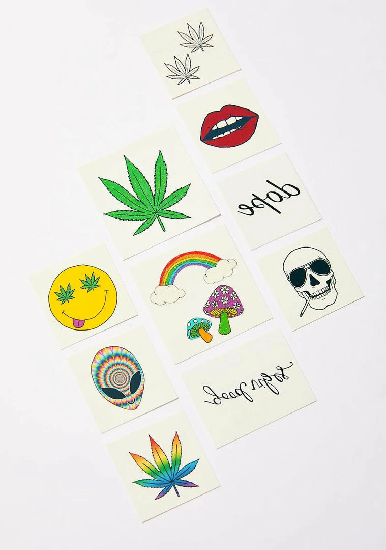 letΓ’ΒΒs keep tha good timez a-rollinΓ’ΒΒ bb! Show Γ’ΒΒem what level yer on with these cutesy Γ’ΒΒn trippy hand drawn temporary tattoos thatΓ’ΒΒll cling to ya Γ’ΒΒtil shower time, featurinΓ’ΒΒ designs like rainbow weed leaves, alienz, doobie smokinΓ’ΒΒ skulls, Γ’ΒΒn a ton more!