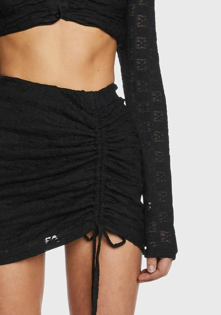 cuz you’re the cutest little trendsetter! This lace mini skirt has a ruched construction, a high waist fit, and adjustable drawstring ties.