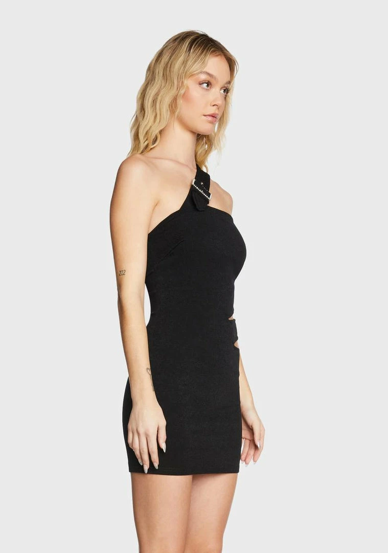 cuz you’ve got an edge. This dress comes with a one shoulder fit, buckle details, cut out details, a bodycon fit, and a back zip closure.