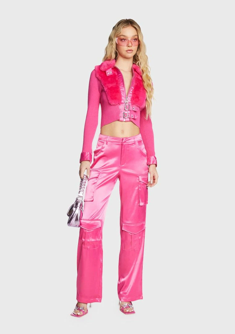Buy π Pretty Garbage Pink Satin Cargo Pants Bottoms π―