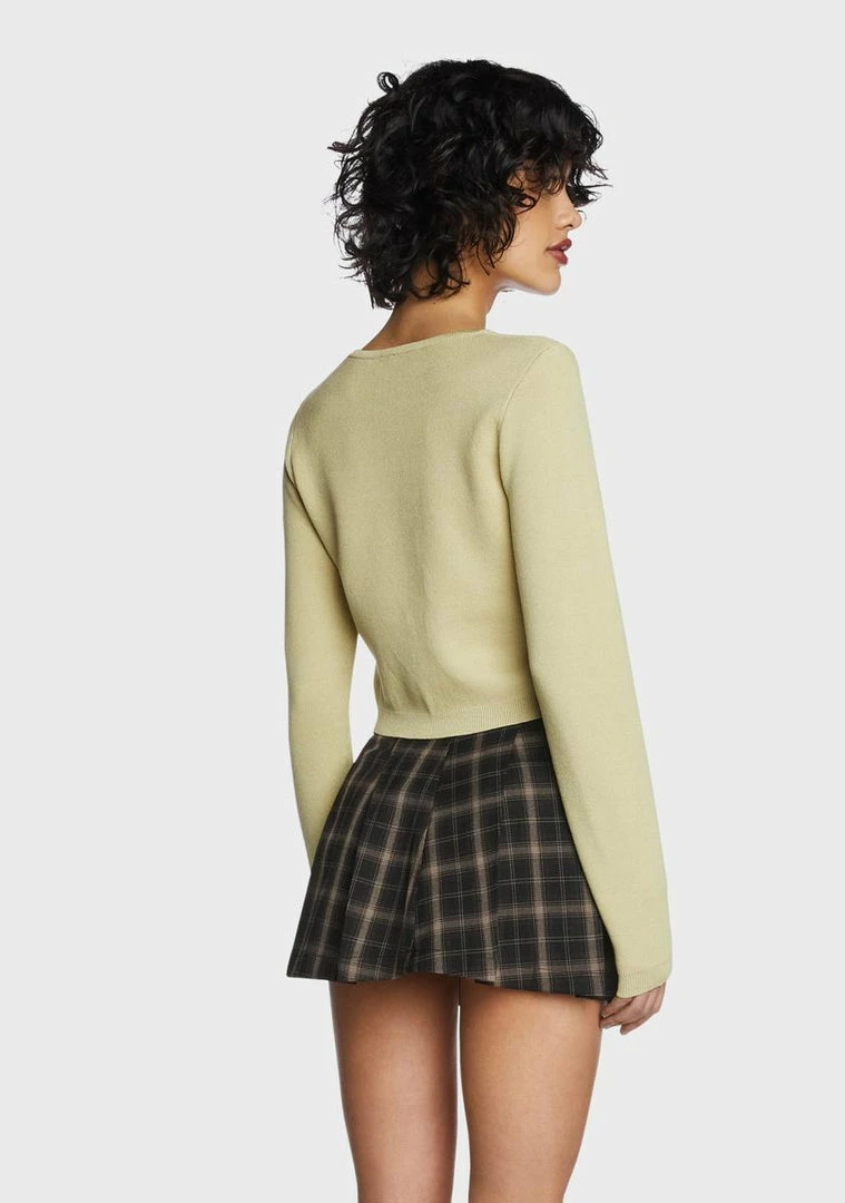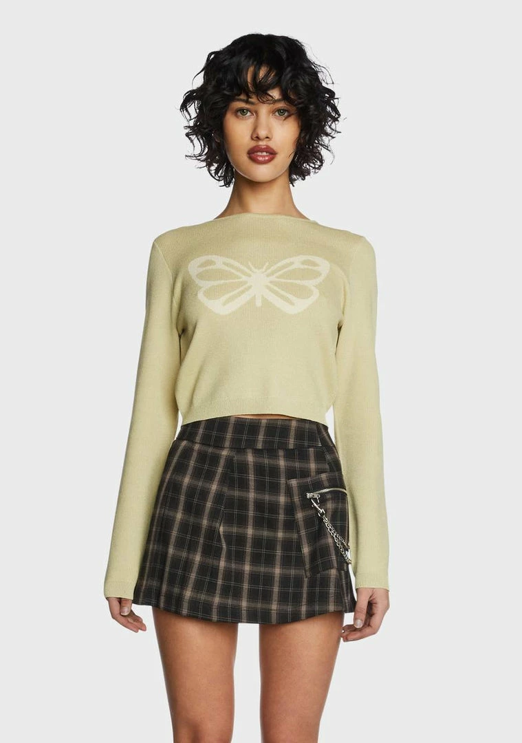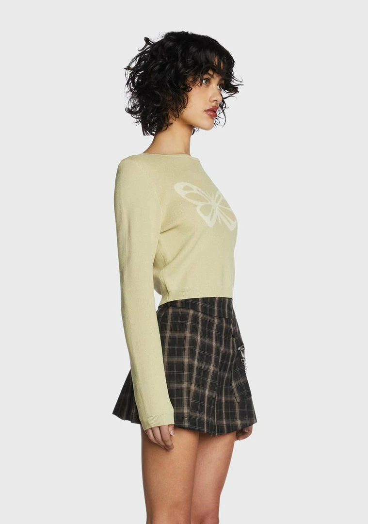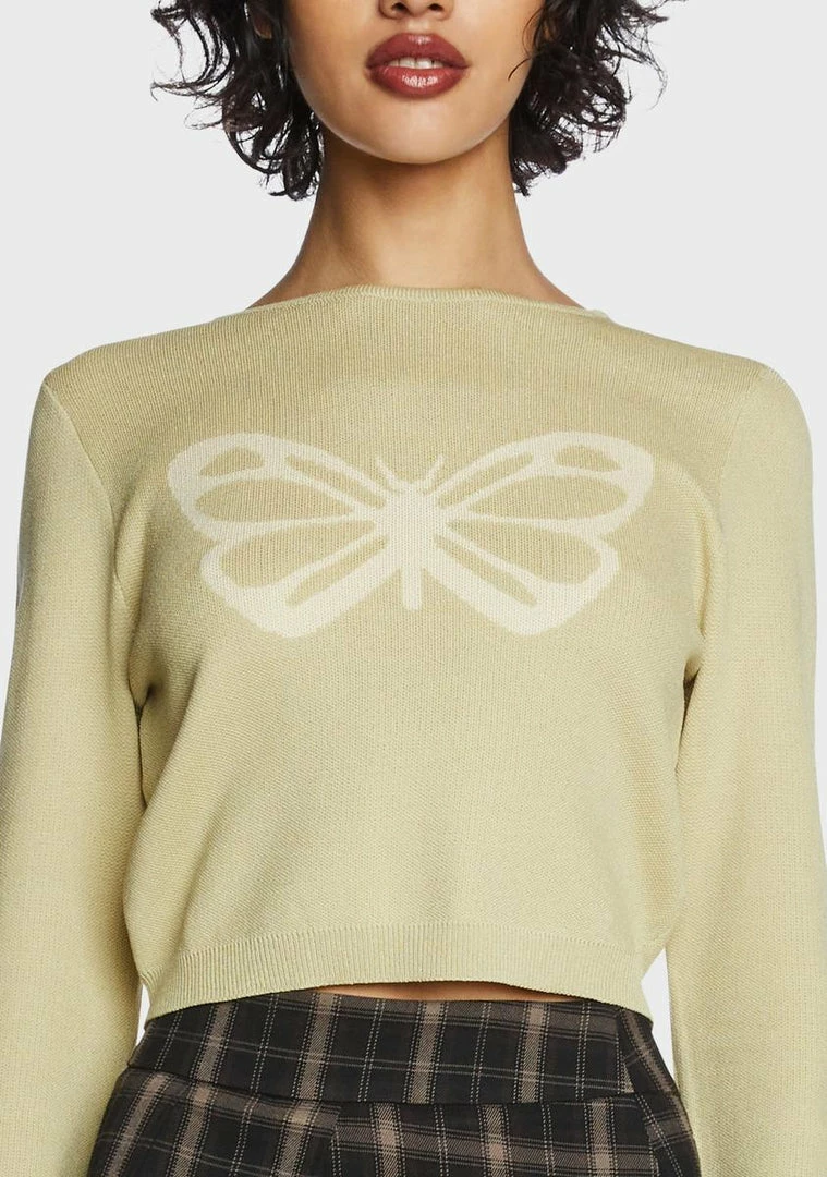 cuz you keep it cute. This long sleeve knit top has a slightly cropped fit and a butterfly graphic on front.