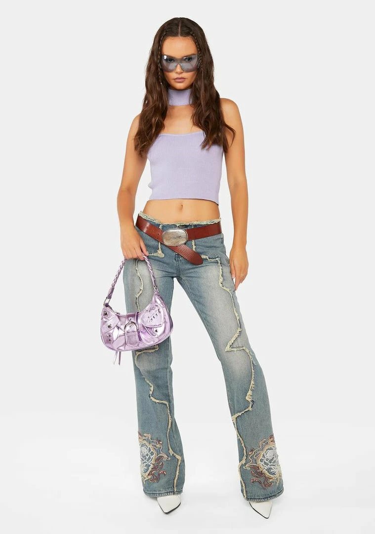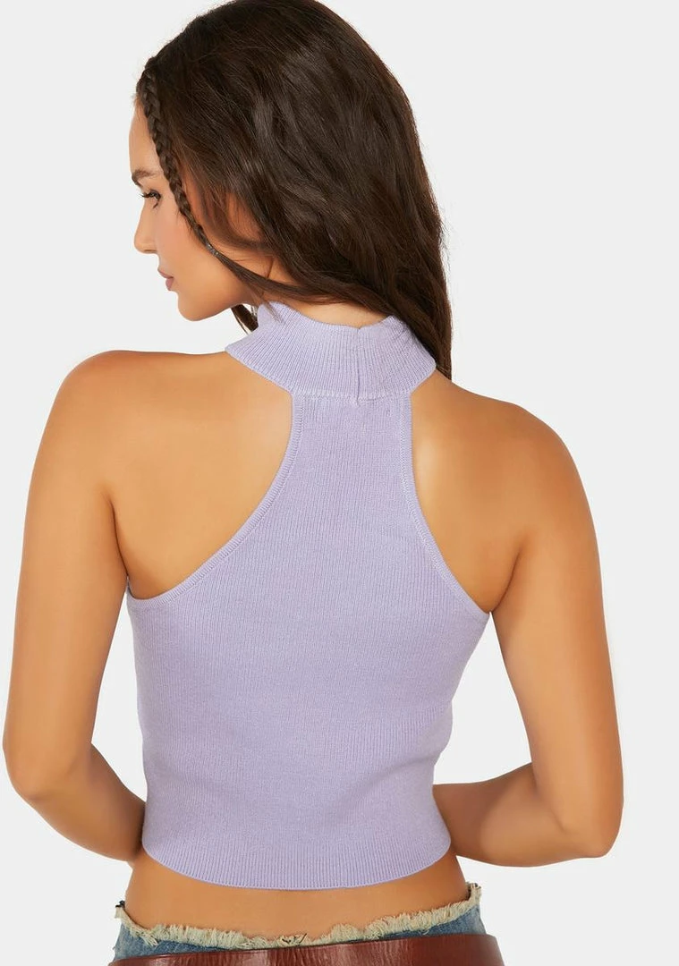 cuz you’re not here to blend in. This crop top has a straight neckline, a mock choker detail, and a stretchy ribbed knit construction.