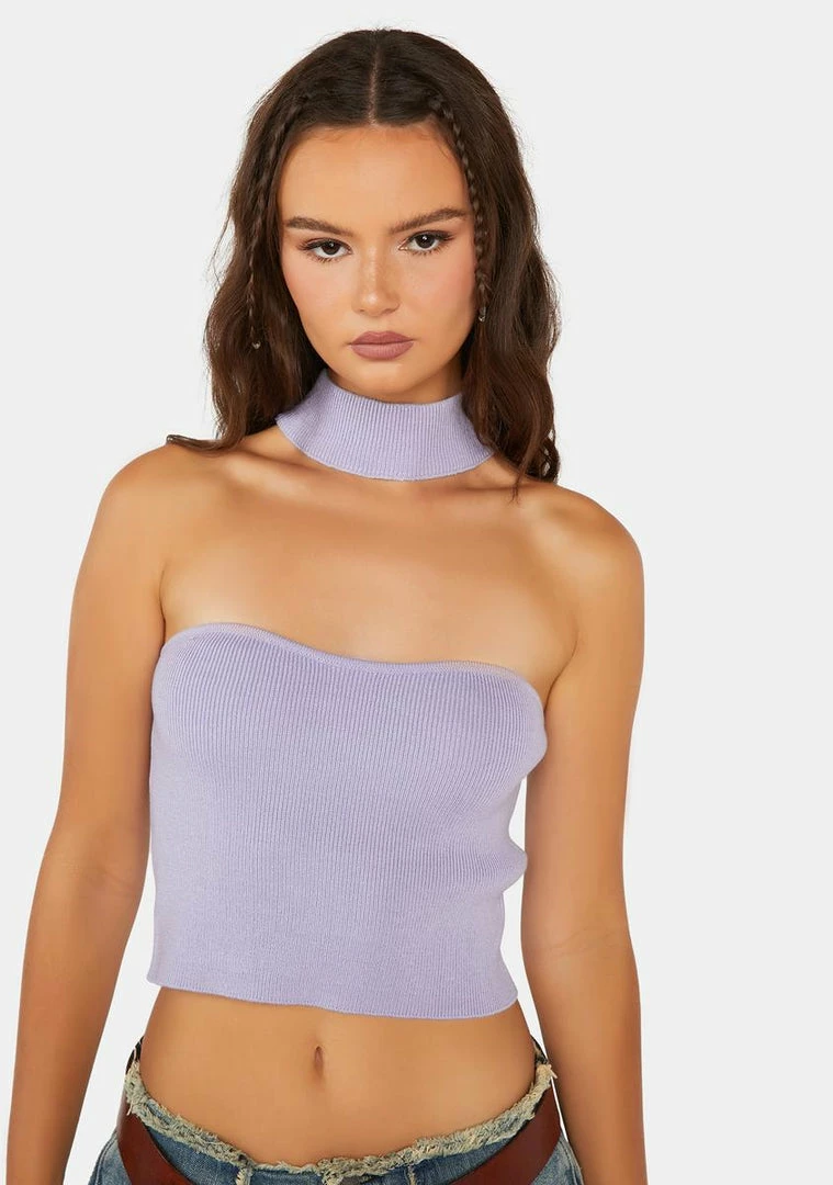 Deals π Pretty Garbage Tube Top Knit Choker Cropped Top π